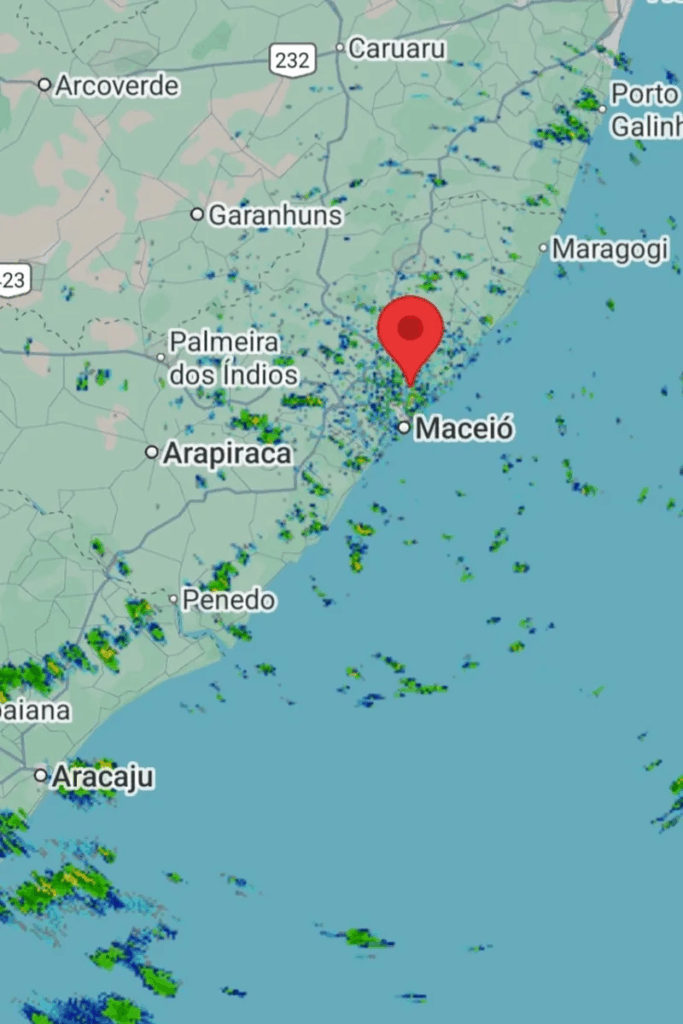 O Centro Nacional de Monitoramento e Alertas de Desastres Naturais (Cemaden) emitiu nesta terça-feira (6) um alerta para a possibilidade de pancadas de chuva moderadas a fortes em Maceió, com risco de inundações pontuais, extravasamento de canais de drenagem e alagamentos temporários em áreas rebaixadas da cidade.