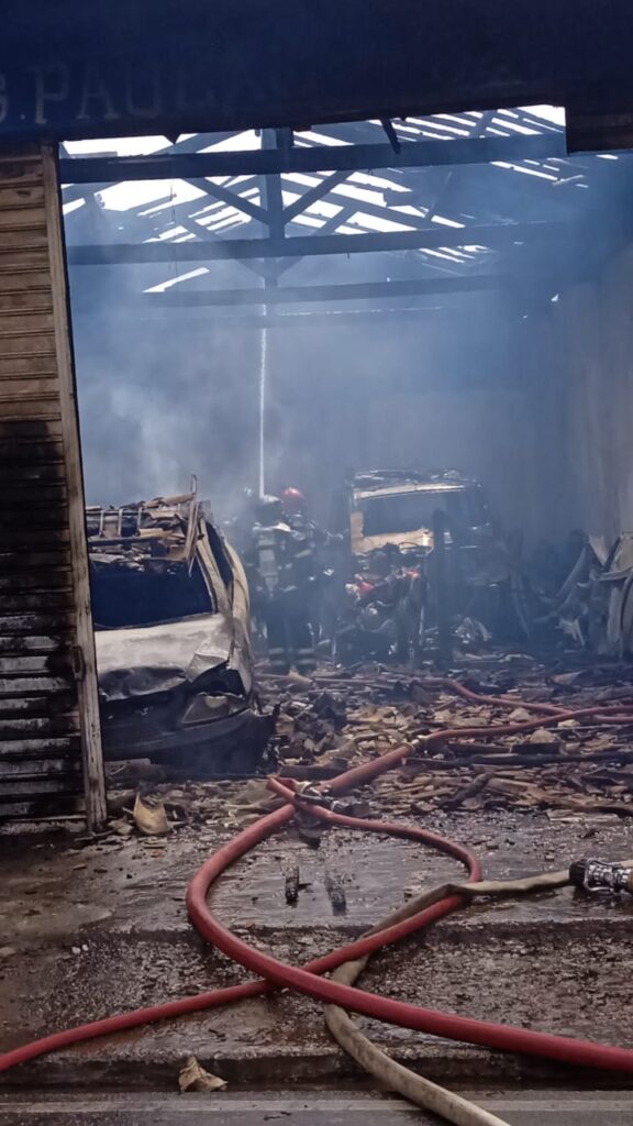 Testemunhas contaram que o proprietário da oficina realizava um trabalho com solda elétrica quando o incêndio começou.