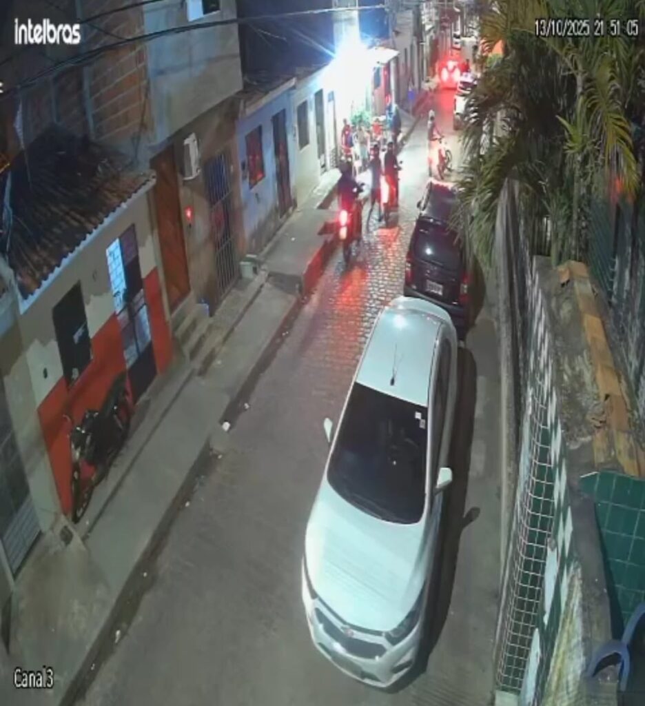 Nas imagens quatro motos chegam com os garupas que saltam das motocicletas e iniciam as agressões. Outros homens se aproximam e também se envolvem nas agressões, em seguida os motoqueiros fogem do local.