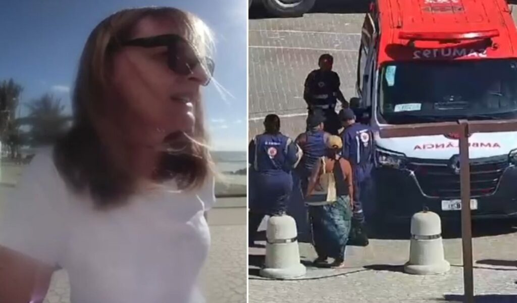 Com a chegada dos socorristas do Serviço de Atendimento Móvel de Urgência (Samu), o homem que apresentava dores no peito e dificuldade para respirar se levantou do banco e foi acompanhado até a ambulância, sendo amparado pelos profissionais de saúde, pois ainda estava com tontura.