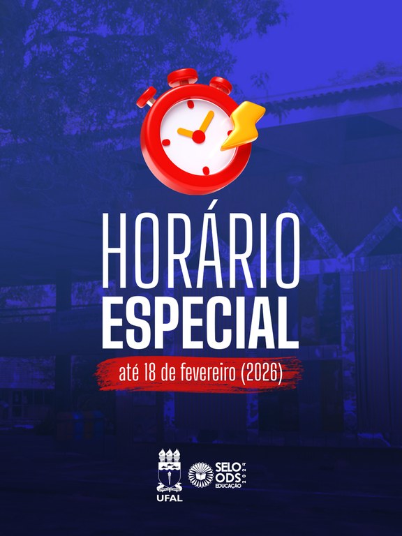 A partir desta segunda-feira (1°) a Universidade Federal de Alagoas (Ufal) vai funcionar em horário especial. A Instrução Normativa Conjunta N° 07, da Pró-reitoria de Gestão de Pessoas e do Trabalho (Progep) e do Gabinete Reitoral (GR), estabelece as diretrizes para o funcionamento da instituição durante o período de férias, recesso natalino e recesso acadêmico, compreendido entre 1º de dezembro de 2025 e 18 de fevereiro de 2026.