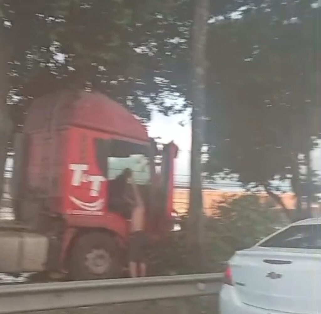 Motoristas que trafegava a Avenida Durval de Góes Monteiro, no bairro do Jardim Petrópolis, em Maceió, registraram uma carreta, que transportava uma retroescavadeira, em cima do canteiro central da avenida. O fato foi registrado na tarde deste domingo (28).
